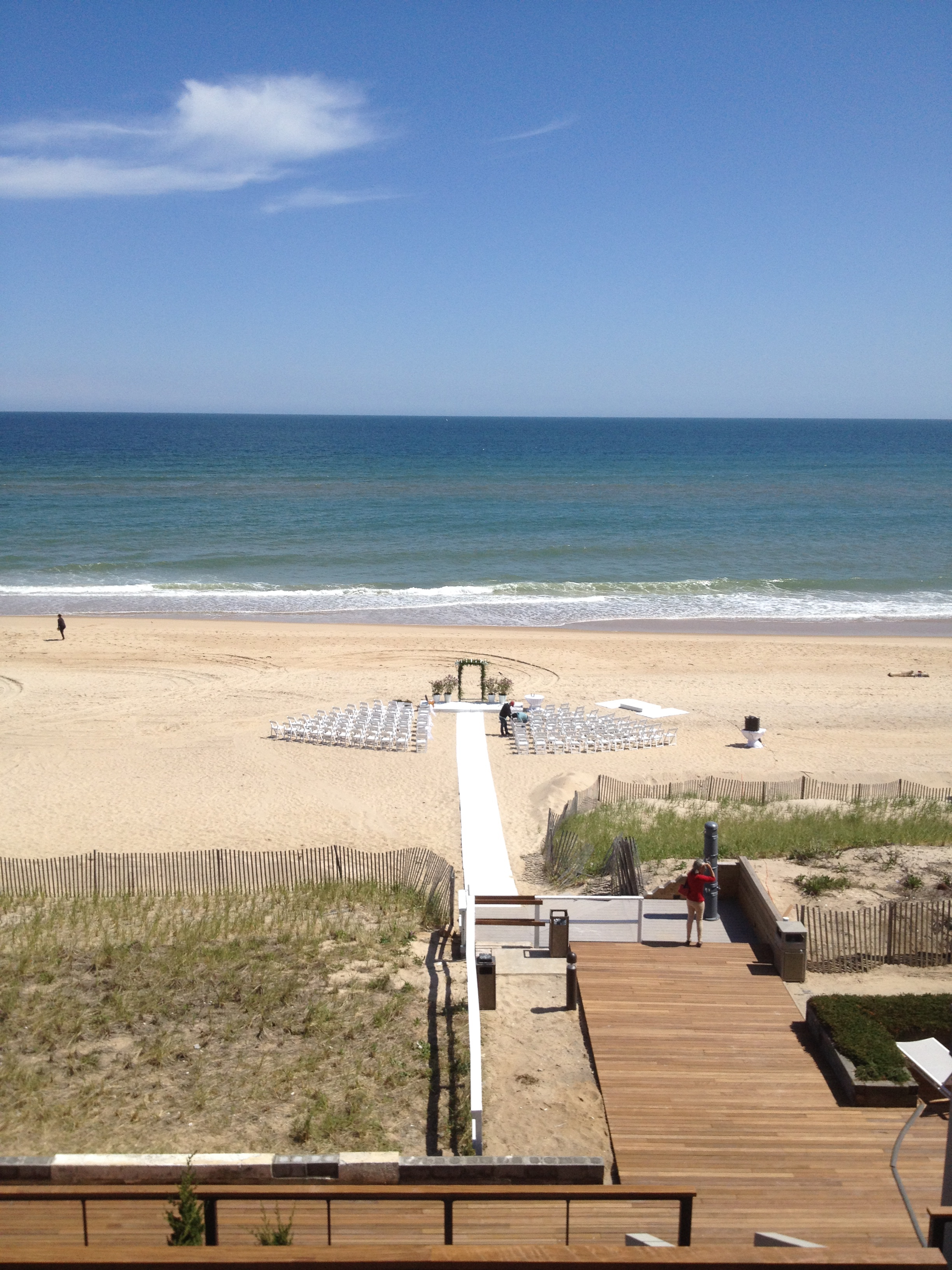 New York wedding planner looks over the beach where the wedding ceremony is about to begin