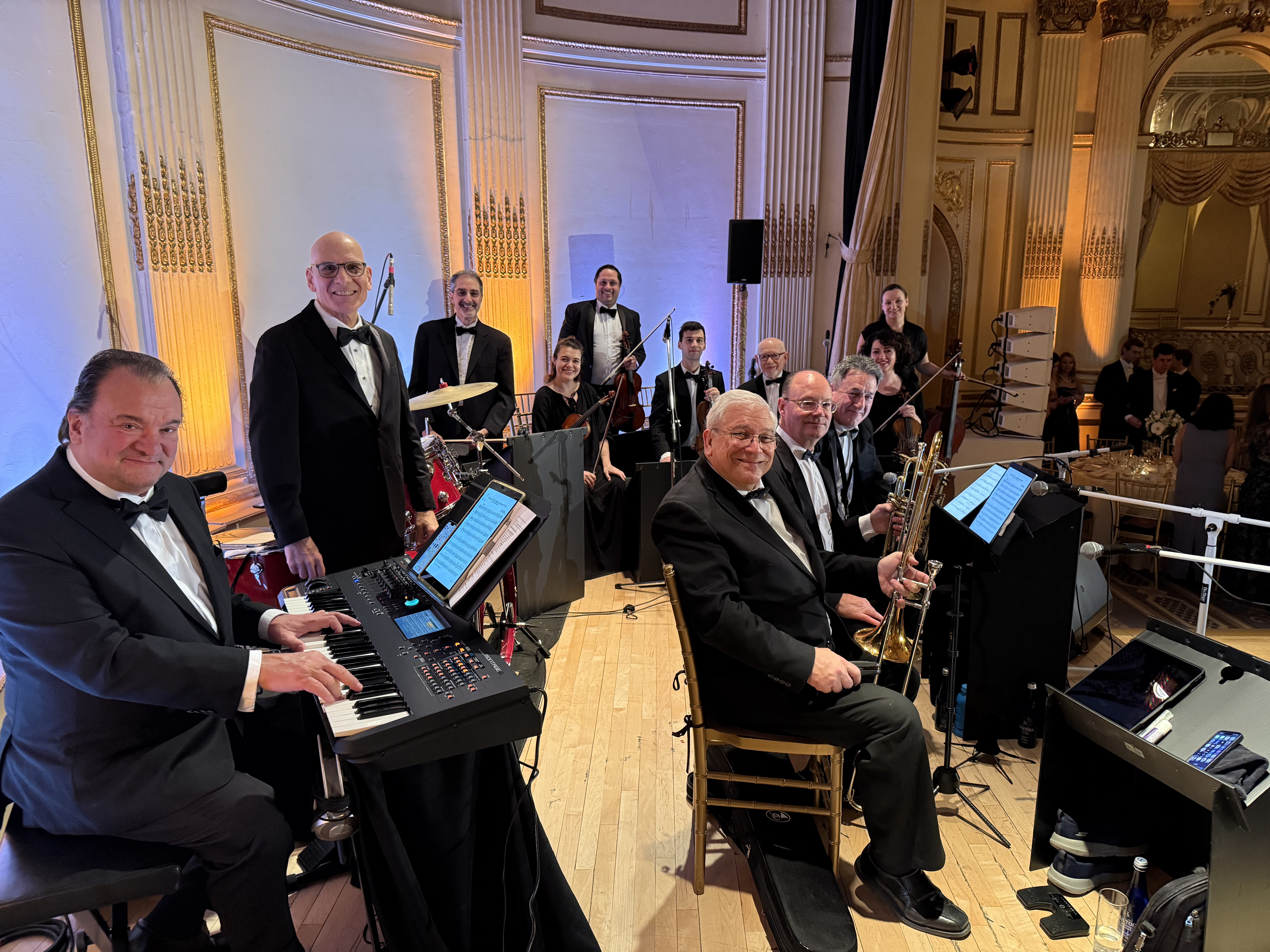 The New York Orchestra performed for the 64th annual Quadrille Ball, 2025 at The Plaza Hotel in NY City (see highlight reel below). The orchestra’s instrumentation is 4 violins, viola, cello, contra-bass, trumpet, trombone, saxophone/clarinet, co-musical director pianist Dom Cicchetti, led by drummer/bandleader Bill Messinetti.