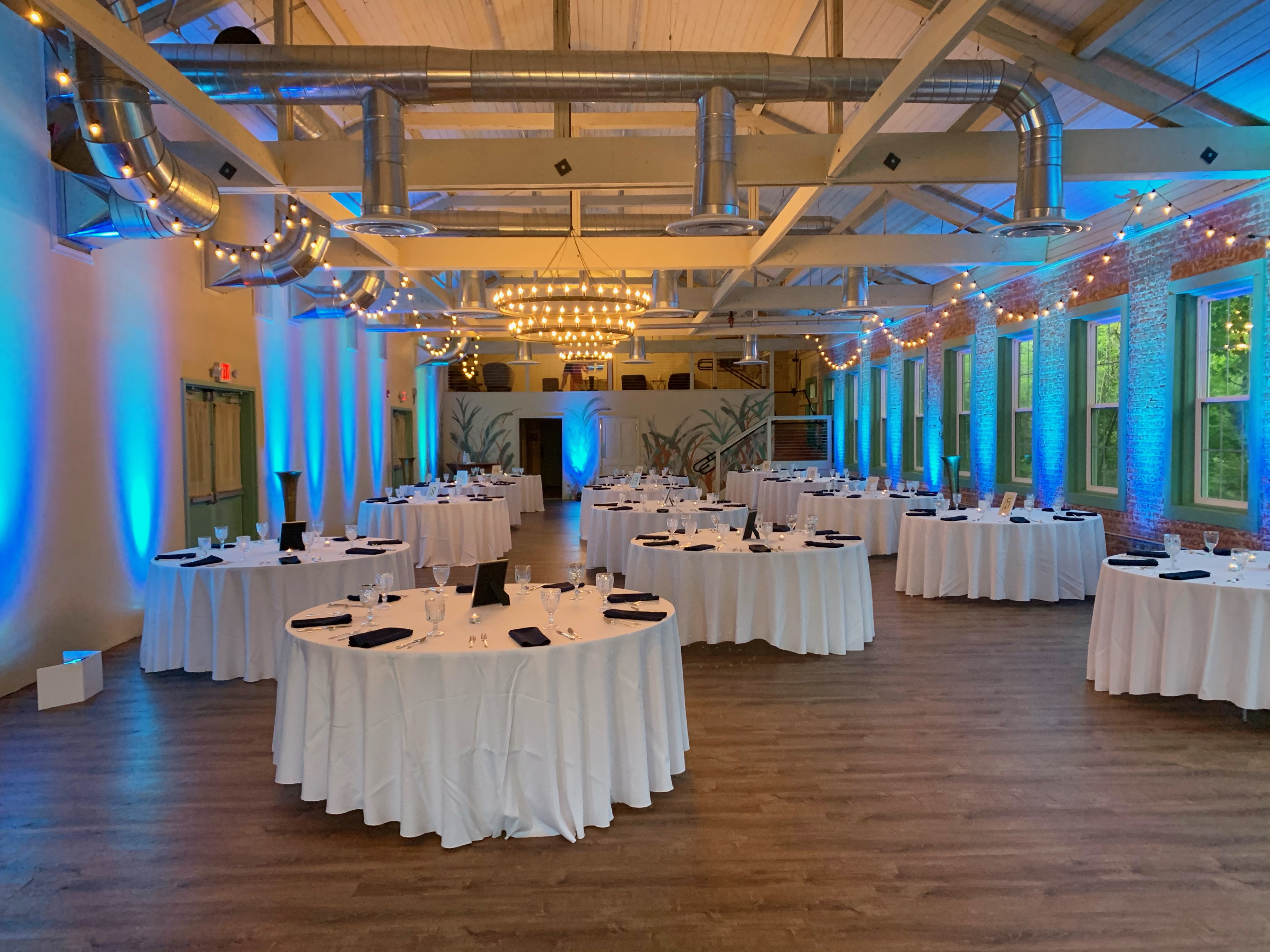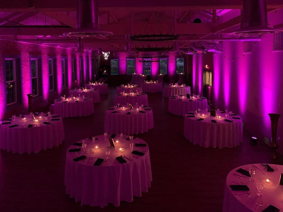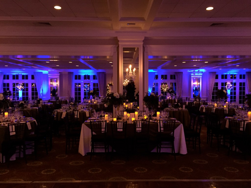 Ambient illumination of the perimeter of the ballroom using LED lighting. Turn your ballroom into any ambient color you want. Choose from the endless color palette. Lighting technician and custom programming included.